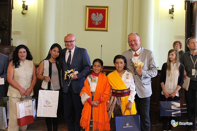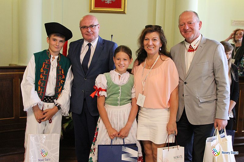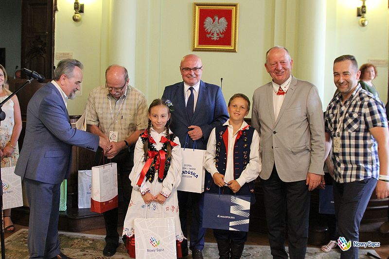 W mszy świętej inaugurującej Festiwal "Święto Dzieci Gór" wzięli również udział członek Zarządu Województwa Małopolskiego Leszek Zegzda, Przewodnicząca Rady Miasta Nowego Sącza Bożena Jawor oraz dyrektor Małopolskiego Centrum Kultury "Sokół" Antoni Malczak, którzy po uroczystej liturgii, wraz z przedstawicielami zespołów z różnych stron świata, udali się do sądeckiego ratusza na spotkanie z władzami miasta. Tam wszystkich uczestników powitał Prezydent Ryszard Nowak. - W imieniu swoim i wszystkich Sądeczan serdecznie was witam. Życzę miłego pobytu, samych sukcesów i mam nadzieję, że czas spędzony tutaj będzie dla was odpoczynkiem, który miło będziecie potem wspominać - mówił Ryszard Nowak. - Jeszcze nie wiem komu będę kibicował, ale wszystkim życzę zwycięstwa.