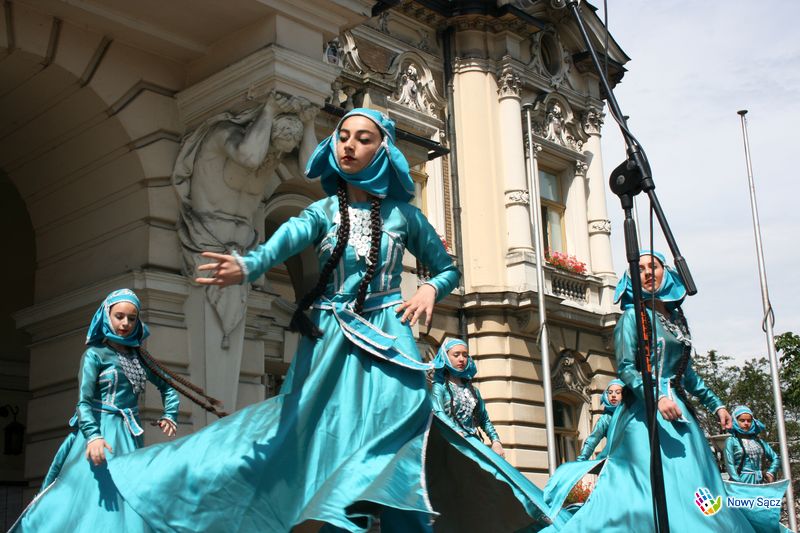 Publiczność miała okazję poznać taneczne umiejętności Gruzinów podczas występu na estradzie przed nowosądeckim ratuszem. Kobiety i mężczyźni tańczą zupełnie inaczej. - Kroki są drobne, delikatne i spokojne, dzięki czemu można odnieść wrażenie, że kobieta płynie – to chyba najlepszy opis charakteru tego tańca.