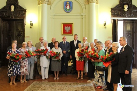 Życzenia dalszych lat wspólnego pożycia małżeńskiego w zdrowiu i pomyślności przekazał świętującym Szmaragdowe i Złote Gody parom małżeńskim Prezydent Nowego Sącza Ryszard Nowak. - Najważniejsze jest to, że jesteście Państwo wzorem do naśladowania dla młodych pokoleń, chlubą i wzorem dla mieszkańców Nowego Sącza. Życzę Państwu wszystkiego co najlepsze - powiedział podczas uroczystego spotkania w sądeckim ratuszu Ryszard Nowak.