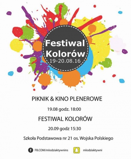 - zakończenie Festiwalu Kolorów godz 16:30, zakończenie festynu godzina 18:30.