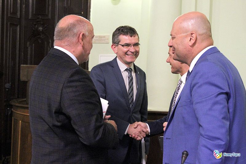 Wizyta wiceministra rozwoju w Nowym Sączu rozpoczęła się od spotkania z władzami miasta. Witolda Słowika podjął prezydent Ryszard Nowak wraz ze swoimi zastępcami Jerzym Gwiżdżem i Wojciechem Piechem. Rozmowa dotyczyła najważniejszych problemów Sądecczyzny, także w kontekście skomunikowania Nowego Sącza z autostradą A4 oraz możliwości szybkiego połączenia kolejowej stolicy subregionu sądeckiego z Krakowem.