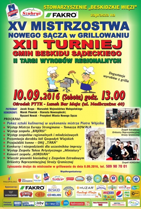 Organizatorzy zapowiadają także niespodzianki dla uczestników. Zgłoszeń do konkursu grillowania można dokonywać do 8 września pod numerem telefonu: 509-90-70-01. Organizatorem imprezy jest Stowarzyszenie "Beskidzkie Więzi", a patronat honorowy sprawuje Prezydent Miasta Nowego Sącza Ryszard Nowak. Początek imprezy – godz. 13:00.