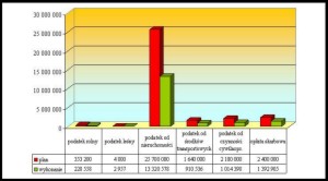 • udziały w podatkach stanowiących dochód budżetu państwa – plan 41 680 417 zł wykonanie 17 806 433 zł,