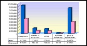 Biorąc pod uwagę wykonanie wydatków ogółem w I półroczu br. widoczne jest, że wydatki bieżące czyli związane z wynagrodzeniami, zakupami itp. zostały zrealizowane zgodnie z założeniami planowymi tj. w wysokości 49,4 % planu rocznego. Niewielkie odchylenia wynikają głównie z prac remontowych, których znaczna większość została wykonana w II i III kwartale br., a zapłata faktur przypadła na III kw.