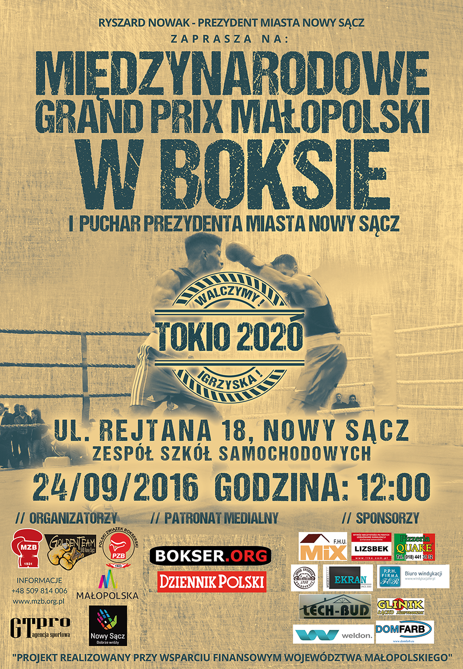Już dzisiaj (24 września) za sprawą Sądeckiego Klubu Bokserskiego „Golden Team” czeka nas w Nowym Sączu wielkie bokserskie święto. Od godziny 12.00 w sali gimnastycznej Zespołu Szkół Samochodowych rozpocznie się Międzynarodowe Grand Prix Małopolski w Boksie o Puchar Prezydenta Miasta Nowego Sącza. Do rywalizacji stanie przeszło 100 zawodników i zawodniczek z ponad 20 klubów z Polski i zagranicy.