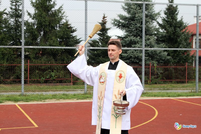 Otwarcie nowego boiska było również okazją do wspólnej modlitwy i poświęcenia nowego obiektu, którego dokonał ks. Mariusz Żuczek z Parafii Matki Bożej Niepokalanej. Kapłan życzył wszystkim aby nowe miejsce było przestrzenią do aktywnego spędzania wolnego czasu w sposób dobry, właściwy i aby służyło wszystkim mieszkańcom osiedla.