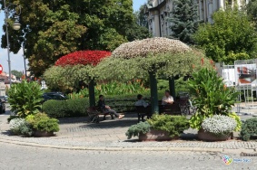 Kolejna piękna aranżacja kwiatowa to parasole kwiatowe, które dają cień dla pragnących odpoczynku na płycie Rynku Nowego Sącza. Zdobią je kwiaty begonii stalekwitnącej i zielistka. Inspirację zaczerpnięto z miasta partnerskiego zlokalizowanego w Chinach. Kolejna kompozycja znajduje się w otoczeniu Pomnika Papieża Jana Pawła II, który zdobi płytę nowosądeckiego Rynku. Zaaranżowano tam zieleń z berberysów i trzmieliny oraz krzewów iglastych. Inną konstrukcję kwietnikową pn. „Piłka” zdobią kwiaty begonii stalekwitnącej w dwóch kolorach. Zlokalizowana jest ona na zieleńcu w okolicach stadionu Klubu Sportowego „Sandecja” w Nowym Sączu, przy ul. Kilińskiego. Konstrukcję wykonano w 2009 r. I jeszcze jedna propozycja z Nowego Sącza to „Kwietniki konstrukcyjne”, które zostały obsadzone ipomeą w dwóch kolorach, begonią stalekwitnącą i plektranusem. Kwietnik powstał w 2010 roku".