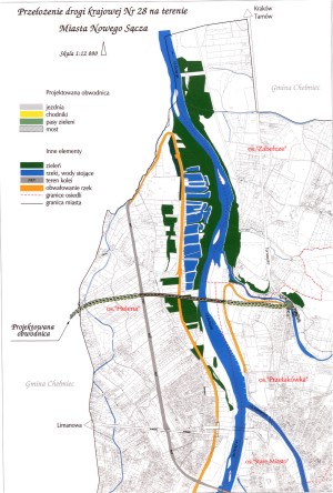 Obwodnica będzie biegła od skrzyżowania ulicy Tarnowskiej z ulicą Witosa, przez Dunajec, do ulicy Marcinkowickiej, a następnie przez gminę Chełmiec i łączyć się będzie z obecną drogą Nr 28 w okolicach skrzyżowania z drogą do Niskowej. Długość obwodnicy wyniesie 3680 mb, w tym w Nowym Sączu 2065 mb, a w gminie Chełmiec 1615 mb.