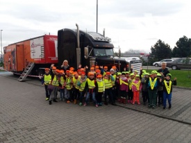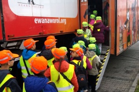 Zajęcia odbywały się w specjalnie wyposażonej sali multimedialnej, zlokalizowanej na pokładzie wielkiej i rzadko spotykanej na polskich drogach amerykańskiej ciężarówki marki Freightliner.