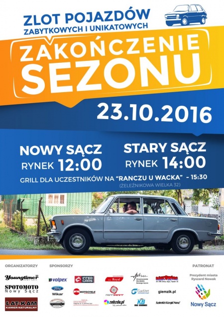 Zabytkowe, klasyczne i unikatowe pojazdy będzie można zobaczyć w najbliższą niedzielę (23 października) na sądeckim rynku. Zlot będzie zakończeniem sezonu 2016 grupy Youngtimer Nowy Sącz i przyjaciół.