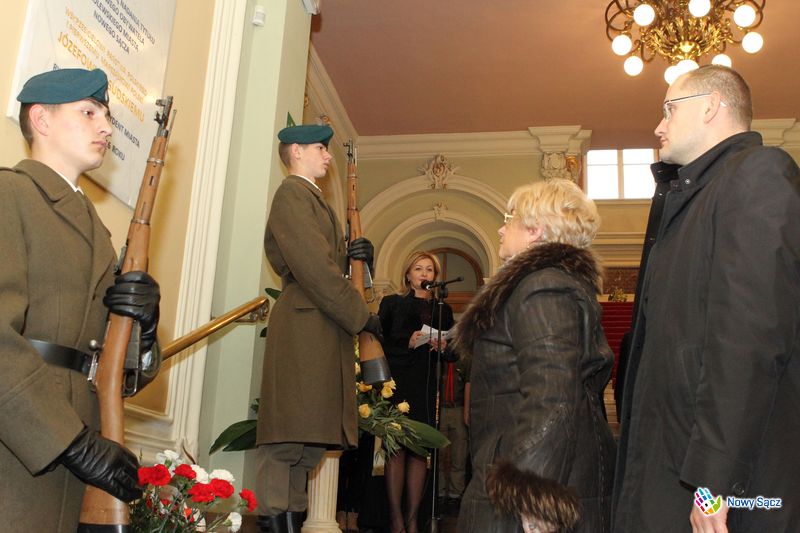 Tablicę odsłonili wiceminister finansów Wiesław Janczyk i jej fundator prezydent Nowego Sącza Ryszard Nowak. Uroczystość odbyła się w obecności parlamentarzystów, władz miasta z zastępcami prezydenta Jerzym Gwiżdżem i Wojciechem Piechem, przewodniczącą Rady Miasta Bożeną Jawor oraz wiceprzewodniczącymi Tomaszem Cisoniem i Michałem Kądziołką. Obecne były również władze powiatu nowosądeckiego, przedstawiciele kombatantów, służb mundurowych, Okręgowej Rady Adwokackiej w Krakowie i delegacji organizacji społecznych. Najstarszymi gośćmi byli kombatanci kpt. Stefan Kulig i Józef Gomółka. Tablicę poświęcił proboszcz bazyliki św. Małgorzaty, ks. Jerzy Jurkiewicz podkreślając, że Józef Piłsudski miał nie tylko odwagę walczyć, ale i "mówić prawdę i strzec jej w sercach i umysłach obywateli".