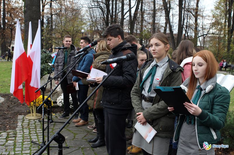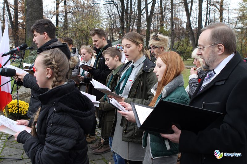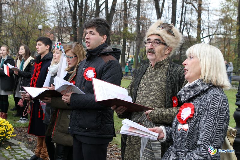 Po mszy uczestnicy przeszli na planty pod Dąb Wolności, gdzie czekali harcerze i młodzież z Miejskiego Ośrodka Kultury w Nowym Sączu. Razem z licznie zebranymi mieszkańcami miasta odbył się koncert pieśni legionowych. Nie zabrakło "Szarej piechoty", "Marszu I Brygady" ani "Ułanów". Koncert pod tytułem„Śpiewy patriotyczne” przygotowali go uczestnicy VIII Gry Miejskiej im. hm Ireny Styczyńskiej pod hasłem "Melduję niepodległość".