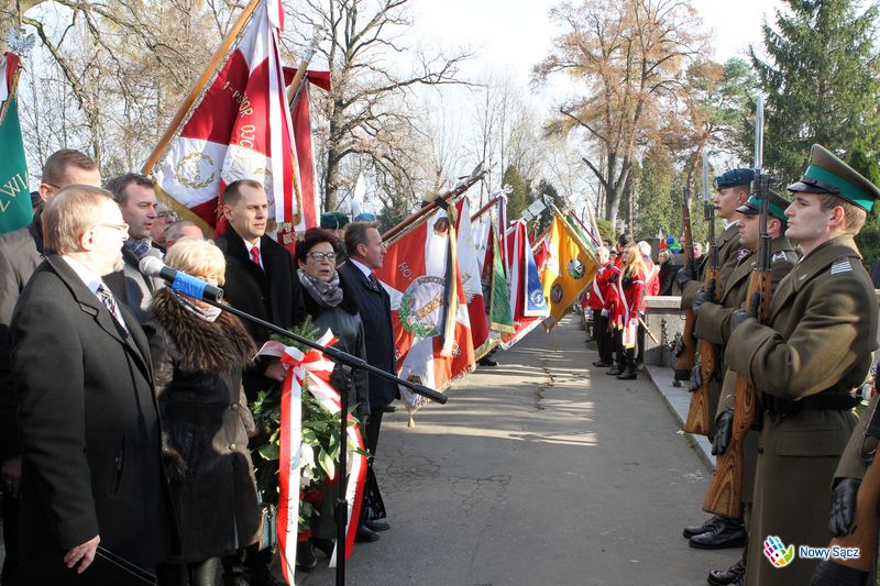 Kolejnym miejscem obchodów był cmentarz komunalny w Nowym Sączu przy ul. Tadeusza Rejtana, gdzie znajduje się odsłonięty w latach międzywojennych pomnik legionistów z czasów I wojny światowej. Przy pomniku sądeccy parlamentarzyści, przedstawiciele władz samorządowych, służb mundurowych i organizacji kombatanckich złożyli wieńce i wiązanki kwiatów.