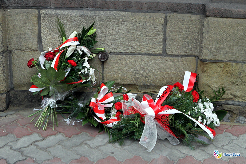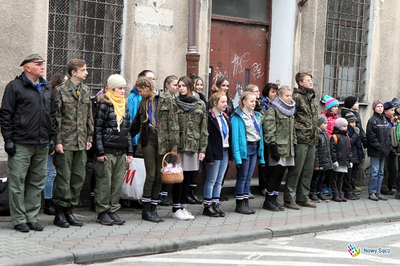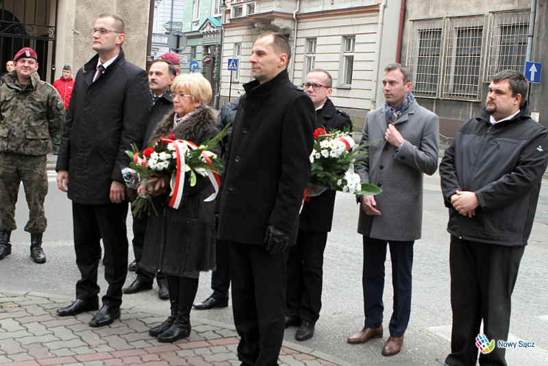 Uroczystości rozpoczęły się na rogu ulic Dunajewskiego i Szwedzkiej. Znajduje się tam tablica dokumentująca pierwszy pobyt Józefa Piłsudskiego w Nowym Sączu na początku I wojny światowej. Prezydent Nowego Sącza Ryszard Nowak, przewodnicząca Rady Miasta Bożena Jawor oraz delegacje służb mundurowych i organizacji społecznych złożyły pod nią wiązanki kwiatów.