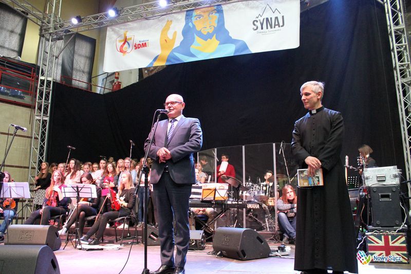 Zgromadzoną w hali MOSiR młodzież powitał Prezydent Miasta Nowego Sącza Ryszard Nowak. - To dla mnie wielka przyjemność patrzeć na tylu młodych ludzi. To owoc światowych Dni Młodzieży, który świadczy o tym, że zarówno Nowy Sącz, jak i Diecezja Tarnowska żyły tymi dniami i były to dla nich niezwykle ważne wydarzenia. Życzę wam głębokich przeżyć i zachęcam do tego, by takie spotkania odbywały się często. Być może Światowe Dni Młodzieży nie odbędą się już w takiej formie i tak jak to miało miejsce w tym roku, ale będziemy o nich pamiętać, bo było to wydarzenie, które zarówno dla młodych, jak i starszych świadczyło o tym, że jesteśmy gotowi służyć nie tylko Panu Bogu, ale także sobie nawzajem. Daliśmy świadectwo nie tylko sobie, ale całemu światu. Życzę wam wrażeń duchowych, ale także tych przyjacielskich - powiedział prezydent.