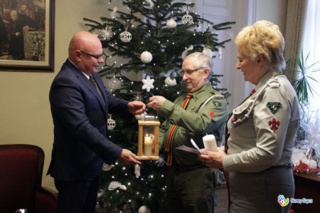 Jak co roku w okresie przedświątecznym w gabinecie prezydenta Nowego Sącza zapłonęło Betlejemskie Światełko Pokoju, przekazane przez Zarząd Hufca Związku Harcerstwa Polskiego komendanta hm. Stanisława Gniadego oraz Zastępcę Komendanta Hufca ds. organizacyjnych hm. Halinę Sliżewską-Ściórkę.