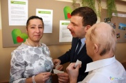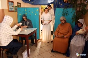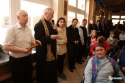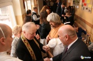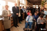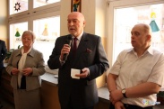 Obecny z niepełnosprawnymi uczestnikami Warsztatów Terapii Zajęciowej ks. Józef Kurek odmówił modlitwę i poświęcił opłatki, a następnie wraz z prezes Jadwigą Jasińską zaprosił do składania sobie świątecznych życzeń.