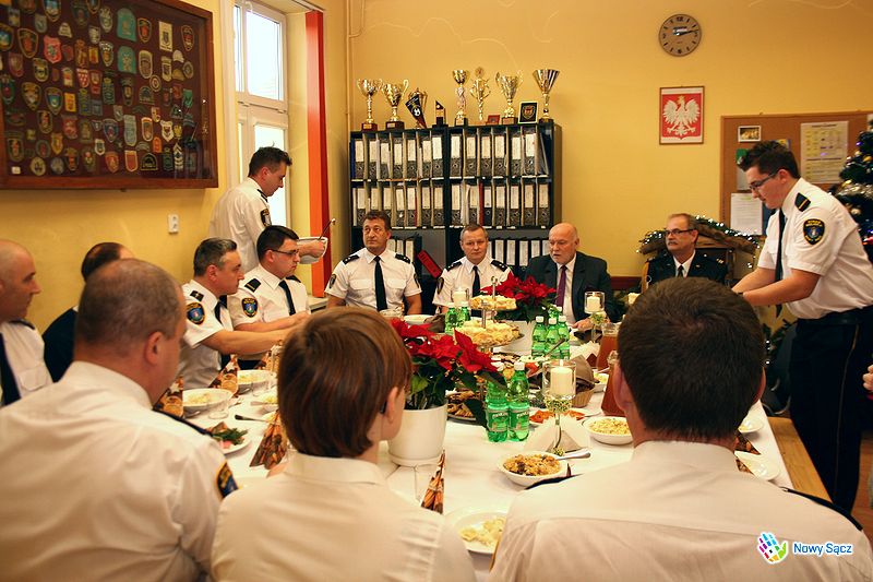 Po złożeniu życzeń i połamaniu się opłatkiem uczestnicy spotkania zasiedli przy wspólnym stole i zjedli wigilijny barszcz z uszkami i rybę. Wszystkie potrawy zostały przygotowane przez żeńską część nowosądeckiej Straży Miejskiej.
