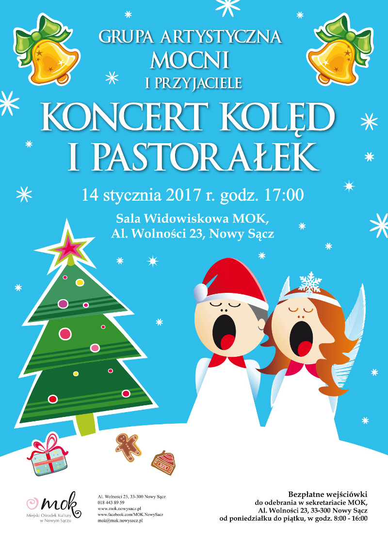 Miejski Ośrodek Kultury w Nowym Sączu zaprasza w dniach 14 i 15 stycznia 2017 r. do swojej siedziby przy Al. Wolności 23 na kolejne koncerty kolęd i pastorałek.