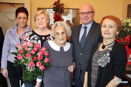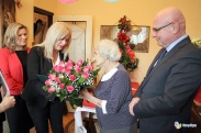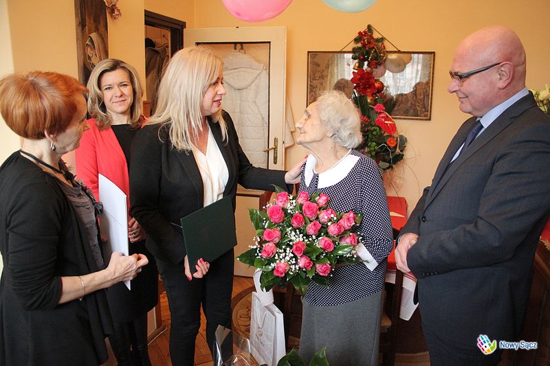 Prezydent Ryszard Nowak złożył najlepsze życzenia obchodzącej setne urodziny pani Józefie Grzegorczyk i wręczył wyjątkowej Sądeczance kosz kwiatów wraz z upominkiem oraz listy gratulacyjne od Premier RP Beaty Szydło oraz Wojewody Małopolskiego Józefa Pilcha.
