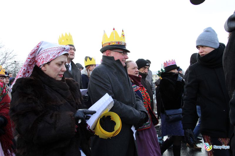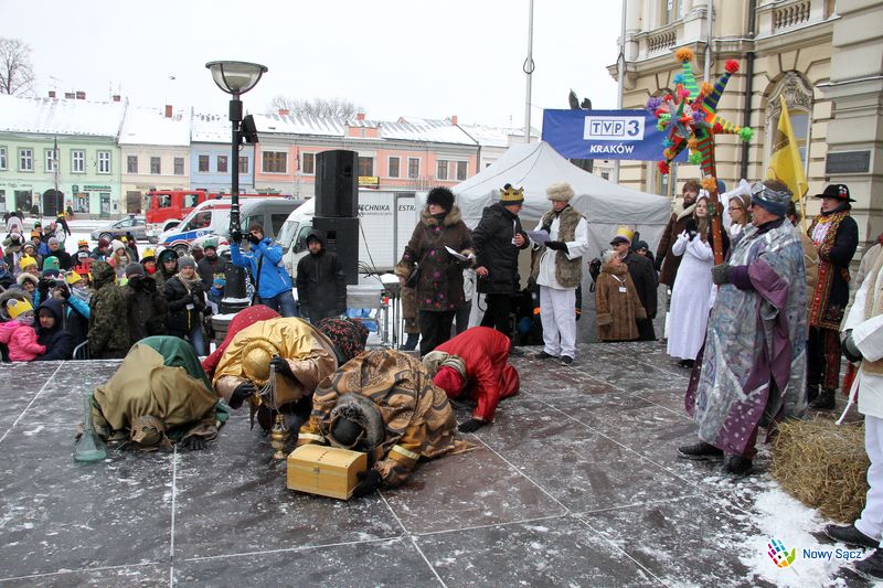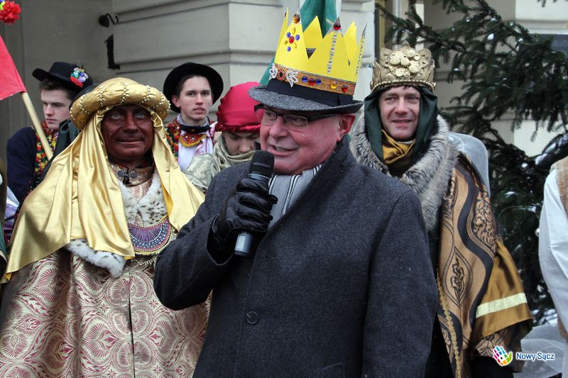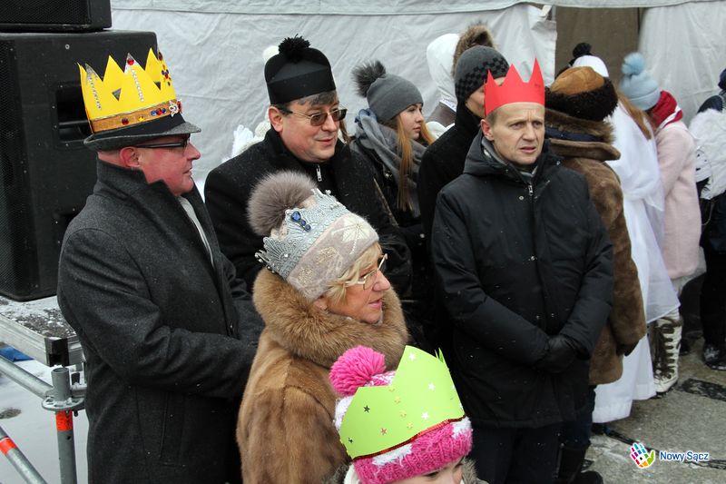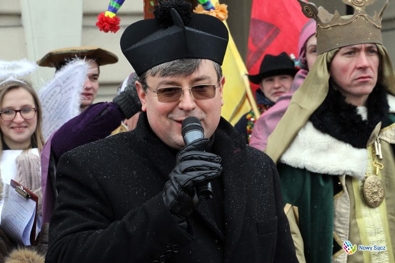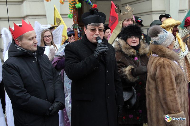 Finałową część Nowosądeckiego Pokłonu Trzech Króli przed sądeckim ratuszem poprowadzili Barbara Porzucek i Jakub Bulzak. Szczególne podziękowania dla organizatorów przekazał prezydent Nowego Sącza Ryszard Nowak. - Bardzo się cieszę, że mimo takiego mrozu i zimna jesteśmy tutaj wszyscy razem. Stało się już tradycją, że spotykamy się w ten dzień na sądeckim Rynku tuż po pochodzie Trzech Króli. Serdecznie dziękuję inicjatorce wydarzenia pani Bożenie Jawor, która wymyśliła to przed pięciu laty i również jej należą się ukłony - powiedział Ryszard Nowak.