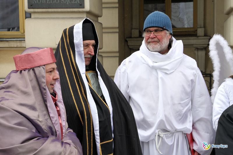 Orszak Trzech Króli przeszedł ulicą Lwowską w stronę Rynku, a pierwszy przystanek został zaplanowany na wysokości ulicy Zakościelnej. Tam na balkonie na uczestników pochodu oczekiwał Prorok (w tej roli Bogusław Kołcz) w towarzystwie aniołów, a sądeczanie usłyszeli fragment Psalmu 72: