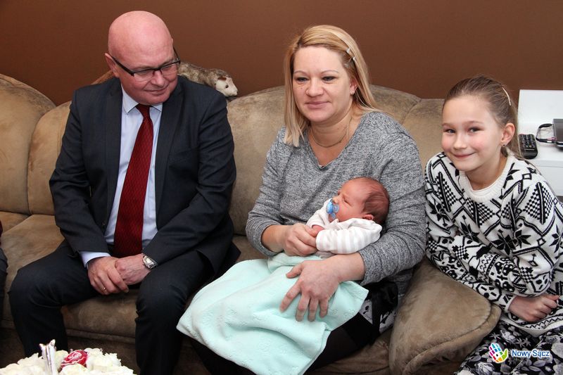 Jest nie tylko pierwszym Sądeczaninem, ale również jednym z pierwszych obywateli naszego kraju, który przyszedł na świat na oddziale ginekologiczno-położniczym sądeckiego szpitala dokładnie minutę po północy pierwszego dnia nowego 2017 roku. Mowa o maleńkim Tomku Kmaku, którego wraz z rodzicami - Eweliną i Grzegorzem, a także starszą siostrą Olą, odwiedził prezydent Nowego Sącza Ryszard Nowak.