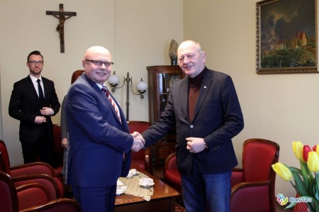 W gabinecie prezydenta Ryszarda Nowaka odbyło się spotkanie z Członkiem Zarządu Województwa Małopolskiego Leszkiem Zegzdą, dotyczące nieruchomości zajmowanych przez Wojewódzką Instytucję Kultury Małopolskie Centrum Kultury "Sokół" w Nowym Sącz i procesu zamiany nieruchomości pomiędzy Województwem Małopolskim a Miastem Nowy Sącz. W spotkaniu uczestniczyli także dyrektor Departamentu Rozwoju Gospodarczego Urzędu Marszałkowskiego Robert Maciaszek oraz kierownik Zespołu ds. Mienia Marzena Gadzik-Wójcik.