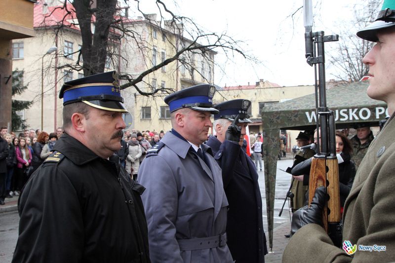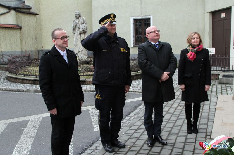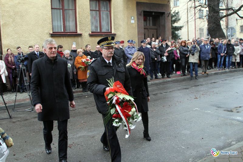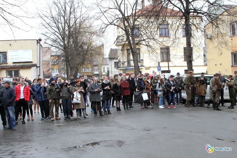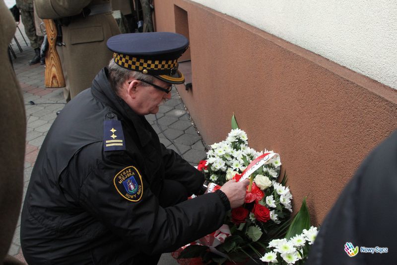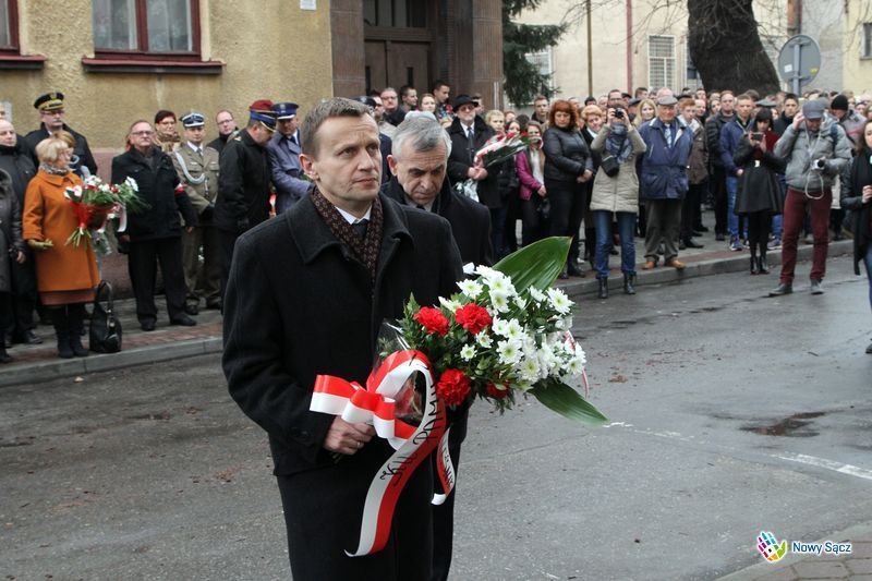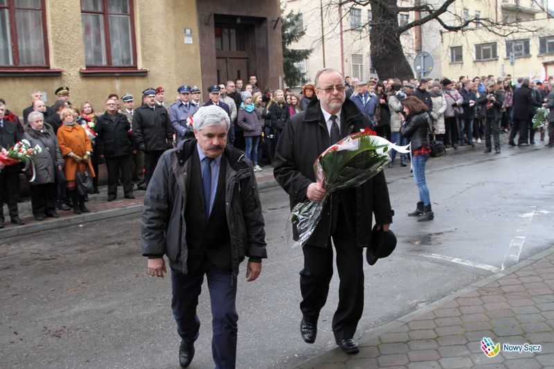 O godz. 13:30 rozpoczęły się uroczystości zorganizowane przed budynkiem Wojskowej Komendy Uzupełnień, przez Światowy Związek Żołnierzy Armii Krajowej koło Nowy Sącz. Kwiaty pod tablicą upamiętniającą ofiary dwóch reżimów złożyli przewodnicząca Rady Miasta Bożena Jawor, dyrektor Wydziału Kultury, Sportu, Komunikacji Społecznej i Promocji Józef Kantor, kierownik Kancelarii Prezydenta Małgorzata Grybel oraz Komendant Straży Miejskiej Dariusz Górski. Wiązanki złożyli także sądeccy parlamentarzyści Jan Duda i Józef Leśniak, przedstawiciele Powiatu Nowosądeckiego, członkowie Światowego Związku Żołnierzy Armii Krajowej, przedstawiciele służb mundurowych oraz środowisk i organizacji patriotycznych.