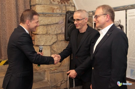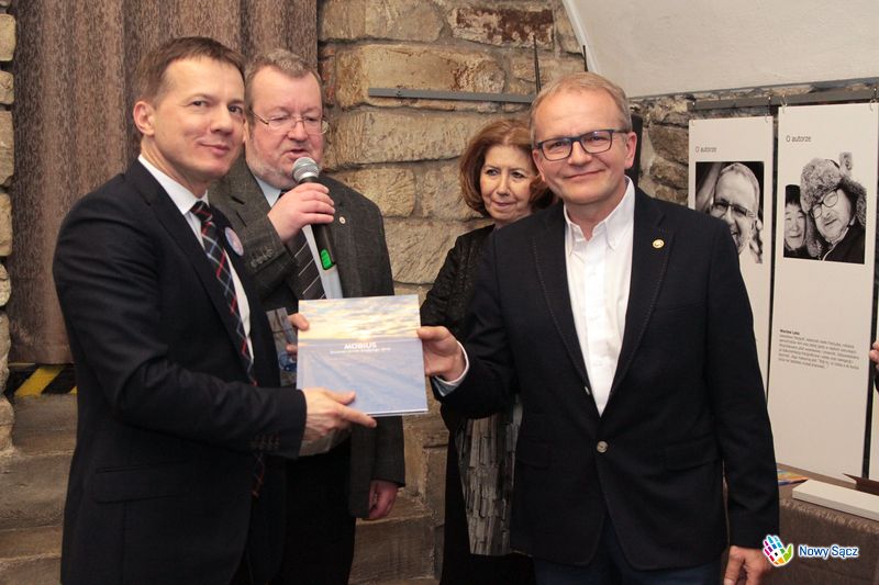 Zastępca prezydenta Wojciech Piech wręczył uczestnikom wyprawy, która zakończyła się pobiciem rekordu Guinessa pamiątkowe upominki od władz miasta Nowego Sącza.