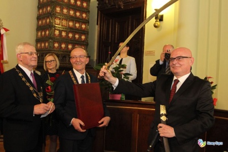 Podczas uroczystego spotkania w sali reprezentacyjnej ratusza replikę karabeli polskiej z XVIII w. prezydentowi Ryszardowi Nowakowi wręczyli: Jerzy Bartnik, prezes Zarządu Związku Rzemiosła Polskiego, Tadeusz Szewczyk prezes Zarządu Izby Rzemiosła i Przedsiębiorczości w Nowym Sączu oraz Starszy Cechu Rzemiosł Różnych i Przedsiębiorczości Jan First.