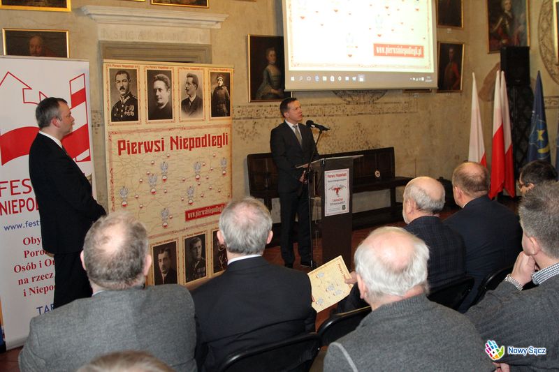 Zastępca prezydenta Nowego Sącza Wojciech Piech podziękował organizatorom za inicjatywę projektu "Pierwsi Niepodlegli". - Gratuluję i dziękuję inicjatorom za podjęcie tego ambitnego i wieloaspektowego projektu, w którym znaleźliście państwo również miejsce dla miasta Nowego Sącza - mówił Wojciech Piech. Zastępca prezydenta podkreślił, że wszystkich nas łączy pamięć historyczna, patriotyzm i odpowiedzialność za właściwy przekaz historyczny dla kolejnych pokoleń. - To znakomita okazja, aby unieść się ponad bieżące sprawy i skoncentrować się na tym, co nas łączy. To wyjątkowa okazja, abyśmy razem mogli świętować stulecie odzyskania niepodległości przez naszą ojczyznę. Jeszcze raz gratuluję podjętej inicjatywy i życzę państwu pełnej satysfakcji z udziału w dzisiejszej konferencji, a później także z realizowanego projektu - zakończył wiceprezydent Nowego Sącza.