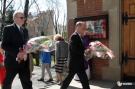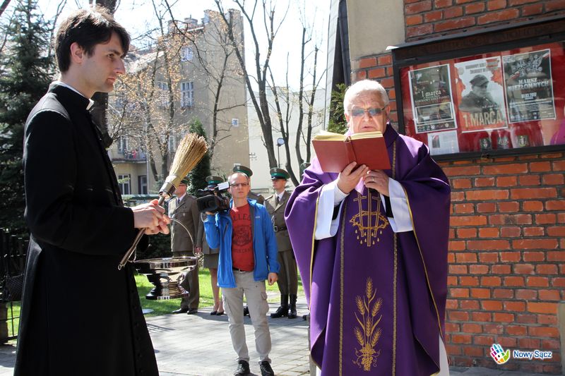 Po zakończonej mszy świętej, uczestnicy obchodów 77. rocznicy ludobójstwa w Katyniu wyszli przed kościół. Tam delegacje władz miasta i powiatu, sądeckich parlamentarzystów, służb mundurowych, kombatantów, Sybiraków, Prawa i Sprawiedliwości, Gazety Polskiej, a także działaczy NSZZ Solidarność, złożyły symboliczne wiązanki kwiatów pod Tablicami Katyńskimi.