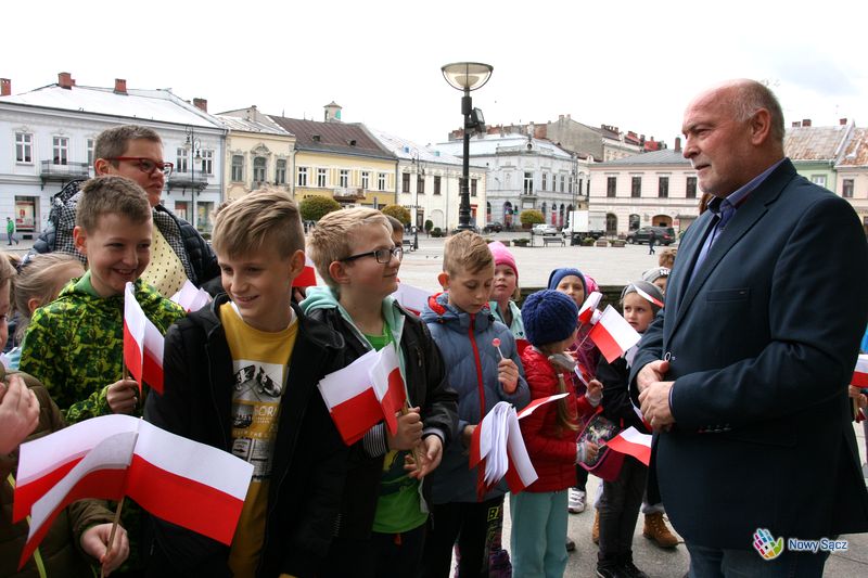 Czy można uczyć patriotyzmu w niebanalny sposób? Można. Udowadnia to nowosądecka Szkoła Podstawowa nr 14, która zorganizowała akcję rozdawania biało-czerwonych flag na sądeckim rynku. Dzieci wykonały flagi same. Pękiem biało-czerwonych flag został obdarowany także zastępca prezydenta Nowego Sącza Jerzy Gwiżdż.