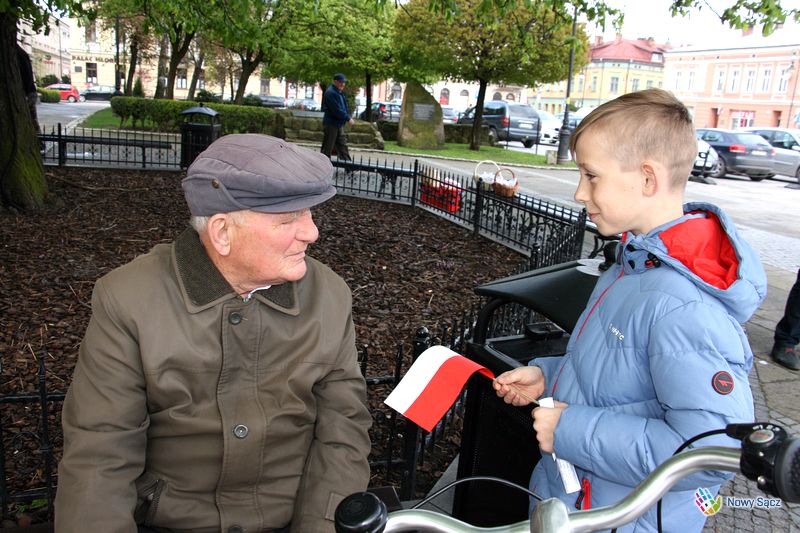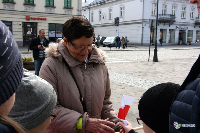 - To jest bardzo dobry pomysł, a dzieciaki gonią, rozdają i mają raj. Jest święto flagi, to dlaczego nie? – uśmiecha się obdarowany przed chwilą Ryszard Juszkiewicz. – Trzeba być dumnym, że się ma biało-czerwoną – dodaje inna sądeczanka, z uśmiechem biorąc flagę od zaaferowanych uczniów z "czternastki".