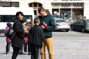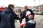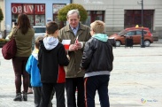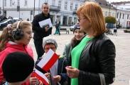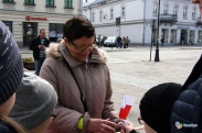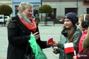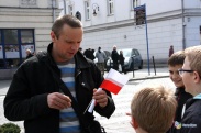 - Bardzo się cieszę, że manifestujecie pod flagą biało-czerwoną – powiedział Jerzy Gwiżdż do uczestników akcji. Rozdawanie flag ma związek ze stosunkowo młodym świętem państwowym, przypadającym 2 maja Dniem Flagi. Flagi zostały przygotowane podczas spotkań, które odbywają się w szkole w ramach innowacyjnego projektu "Wielkie sprawy w naszych rękach".