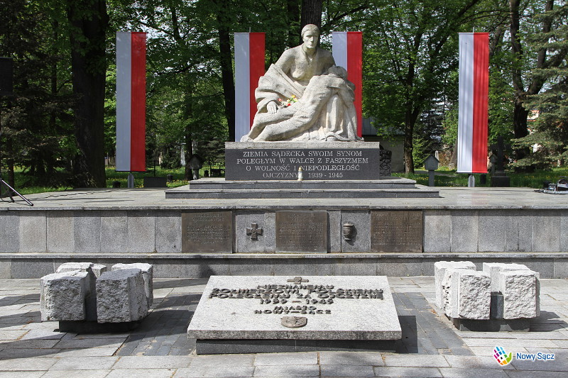 Przed pomnikiem znajduje się płyta Nieznanego Żołnierza z okresu II wojny światowej. Przy alejce prowadzącej do Sądeckiej Piety znajdują się tablice z nazwiskami osób zamordowanych przez hitlerowców.