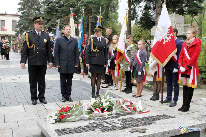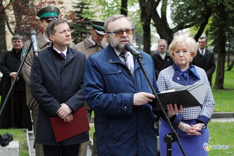 Okolicznościowe przemówienie wygłosił zastępca prezydenta Nowego Sącza Wojciech Piech: - 72 lata temu zakończyła się w Europie najtragiczniejsza w historii ludzkości wojna, II wojna światowa. Spotykamy się w tym miejscu niezmiennie od lat, by zamanifestować pamięć o tamtych odległych, ale wciąż żywych w naszej zbiorowej świadomości latach i wydarzeniach - mówił wiceprezydent. - Gdy ucichły karabinowe i artyleryjskie strzały Europa odetchnęła, odetchnęła Polska i Polacy. Przyszedł czas na bilans tragicznych pięciu lat okupacji, faszystowskiego terroru, gehenny milionów rodaków, lat obozów koncentracyjnych, łapanej, wywózek na roboty, egzekucji, katowni. Nie można zapomnieć też o pakcie Ribbentrop-Mołotow, o 17 września i ataku Związku Sowieckiego na Polskę, o zsyłkach na Sybir, o potwornej zbrodni katyńskiej.