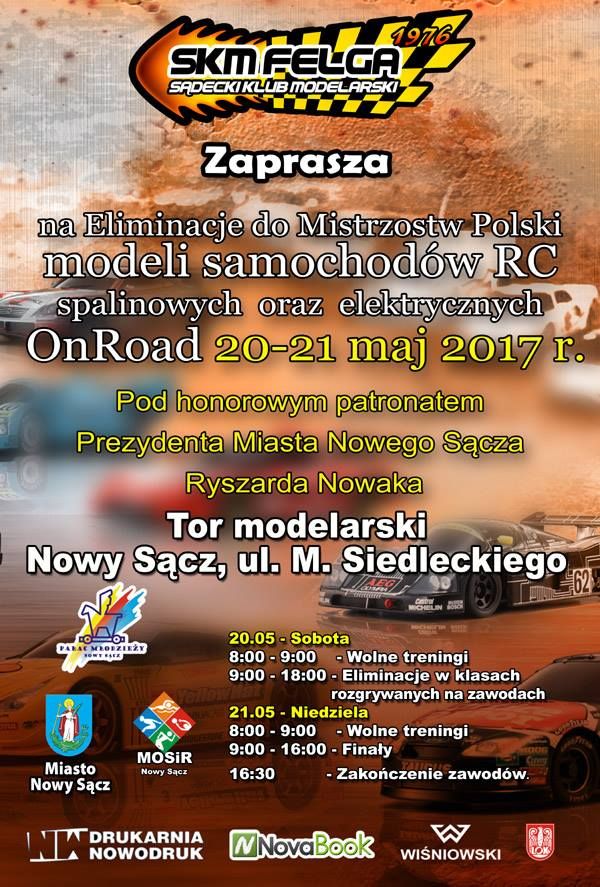 Zawody modeli samochodowych w Nowym Sączu. W najbliższy weekend (20 – 21 maja) na nowo wybudowanym torze modelarskim przy ul. Michała Siedleckiego odbędzie się I Eliminacja Mistrzostw Polski Modeli Samochodów Zdalnie Sterowanych. Patronat nad zawodami objął prezydent Nowego Sącza Ryszard Nowak.