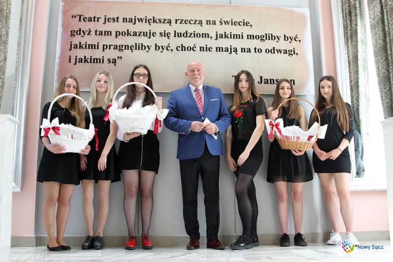 Miłym akcentem uroczystości były podziękowania od obecnej dyrekcji "Dziewiątki" dla zasłużonych, emerytowanych dyrektorów szkoły, wśród których obecni byli: Zofia Basiaga, która w minionym roku otrzymała od Rady Miasta Nowego Sącza Tarczę Herbową "Zasłużony dla Miasta Nowego Sącza", a także Jadwiga Łukawska i Jerzy Brzeziński. Nie mogło też zabraknąć prezentacji bogatej historii Szkoły Podstawowej nr 9, a także przygotowanego przez uczniów występu artystycznego.