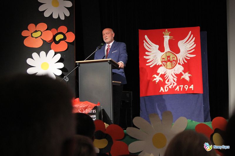 - Proces nauczania i nauczanie powinno przebiegać tak, żeby nie było ciężkim obowiązkiem dla nauczyciela i ciężkim obowiązkiem dla ucznia, tylko żeby był to dar, bo nauka powinna być darem. I te wszystkie elementy wypełnia od 110 lat Szkoła Podstawowa nr 9. I oby tak było we wszystkich sądeckich i polskich szkołach, bo wtedy będziemy mieli mądrych Polaków - mówił Jerzy Gwiżdż do uczestników uroczystego jubileuszu. - Za to wszystko dziękuję tym, którzy z tą szkołą są związani, a także wszystkim, którzy tej szkole przez lata pomagali w codziennej działalności. Serdecznie dziękuję dyrekcji, nauczycielom, wszystkim pracownikom i również rodzicom, a przede wszystkim obecnie uczęszczających do szkoły uczniom. To zaszczyt być uczniem Szkoły Podstawowej nr 9 im. Tadeusza Kościuszki, która świętuje dzisiaj tak piękny jubileusz - dodał zastępca prezydenta Nowego Sącza i zakończył słowami: - W tej szkole widać uśmiechnięte dzieci, a jak kiedyś powiedział Janusz Korczak: "Kiedy śmieje się dziecko, śmieje się cały świat".