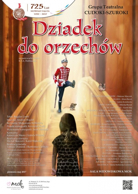 Już w najbliższą niedzielę (28 maja) w sali widowiskowej Miejskiego Ośrodka Kultury w Nowym Sączu odbędzie się kolejna premiera działającej pod patronatem MOK Grupy Teatralnej "CUDOKI-SZUROKI". Tym razem opiekunka artystyczna grupy Małgorzata Stobierska przygotowała widowisko pt. "Dziadek do orzechów" na podstawie opowieści E.T.A. Hoffmanna.