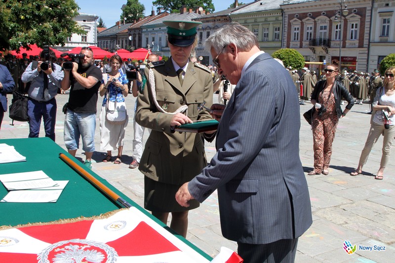 Podczas uroczystości na rynku odczytano akty ufundowania oraz nadania sztandaru i imienia. Warto zaznaczyć, że sztandar został ufundowany z dobrowolnych wpłat mieszkańców Sądecczyzny i całej Małopolski. Przekazali go rodzice chrzestni: ppłk SG Renata Obrzut i senator Stanisław Kogut. Przekazanie poprzedziło symboliczne wbijanie przez fundatorów pamiątkowych gwoździ w drzewce sztandaru i wpisanie się do księgi pamiątkowej. Wśród uczestników tego miłego zwyczaju był prezydent Ryszard Nowak.
