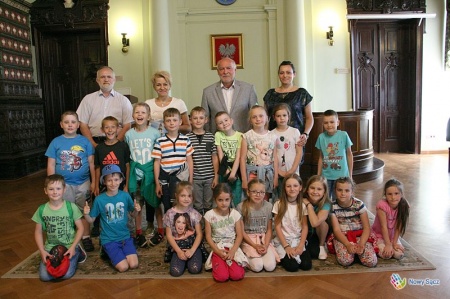 Nowosądecki ratusz odwiedziło kilkudziesięciu uczniów ze szkoły podstawowej w Ptaszkowej. W sali reprezentacyjnej mogli usłyszeć co nieco o historii i dniu dzisiejszym grodu nad Dunajcem i Kamienicą. - To jest takie miasto, które liczy 84 tysiące mieszkańców i w tym roku będzie miało aż 725 lat. Tak więc jest to bardzo, bardzo stare miasto – mówił do pierwszoklasistów z Ptaszkowej Jerzy Gwiżdż. – Są tu przedszkola, szkoły i wyższe uczelnie, bo najważniejsze jest to, żeby się uczyć, uczyć i jeszcze raz uczyć. Jeśli będziecie się dobrze uczyć, to może kiedyś ktoś z was zostanie tu prezydentem – dodał Jerzy Gwiżdż.