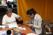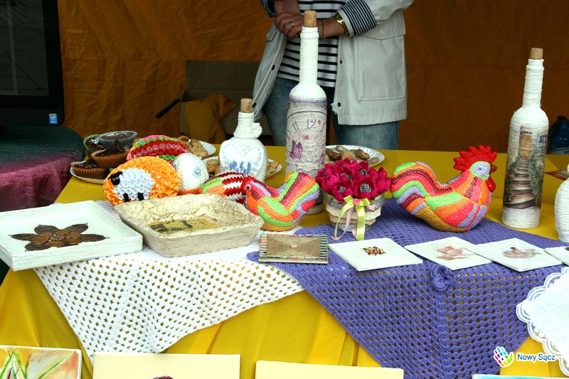 N a wystawie podopiecznych dziennego ośrodka wsparcia dla osób niepełnosprawnych można zobaczyć obrazy, wyroby hafciarskie, ceramikę, rękodzieło i wiele innych prac. Podopieczni Ośrodka wykonywali swoje prace na oczach widzów. – Terapeuci tylko ich inspirują, pomagają tematycznie czy podpowiadają technikę, ale pracę wykonują sami - tłumaczy Anna Szczepanik-Dziadowicz, dyrektor ŚDS w Nowym Sączu. - Tak jak widzimy: jedna pani już się zabrała do malowania, kolejne do haftowania i tak to się u nas odbywa na terapii manualnej. To zresztą tylko mały wycinek tego, co się dzieje w Środowiskowym Domu Samopomocy, bo tych terapii jest mnóstwo – dodaje dyrektor Szczepanik-Dziadowicz.