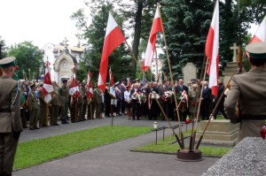 Uczestnicy patriotycznej uroczystości wraz z licznym gronem sądeczan, przy dźwiękach marszów wykonywanych przez reprezentacyjną orkiestrę sądeckich OSP z Tęgoborzy, przemaszerowali na cmentarz komunalny. Tu przed pomnikiem powstańców z 1831 roku i 1863 oraz Grobem Nieznanego Żołnierza modlił się za poległych ks. Stanisław Czachor. Okolicznościowe wystąpienie (drukujemy w załączniku) wygłosił prezydent Nowego Sącza Józef Antoni Wiktor. Przed pomnikiem delegacje organizacji kombatanckich, wojska i służb mundurowych, władz miasta i powiatu, organizacji społecznych oraz sądeccy parlamentarzyści złożyli wieńce i wiązanki kwiatów.