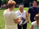Wśród gości pikniku była miedzy innymi przewodnicząca Zarządu Osiedla Zabełcze Bogumiła Kałużny, która odebrała od dyrektor SP 6 Haliny Stanek życzenia imieninowe i podziękowania za współpracę zarządu ze szkołą. /Źródło i fot.: SP nr 6/
