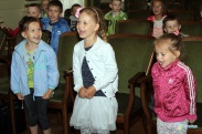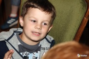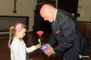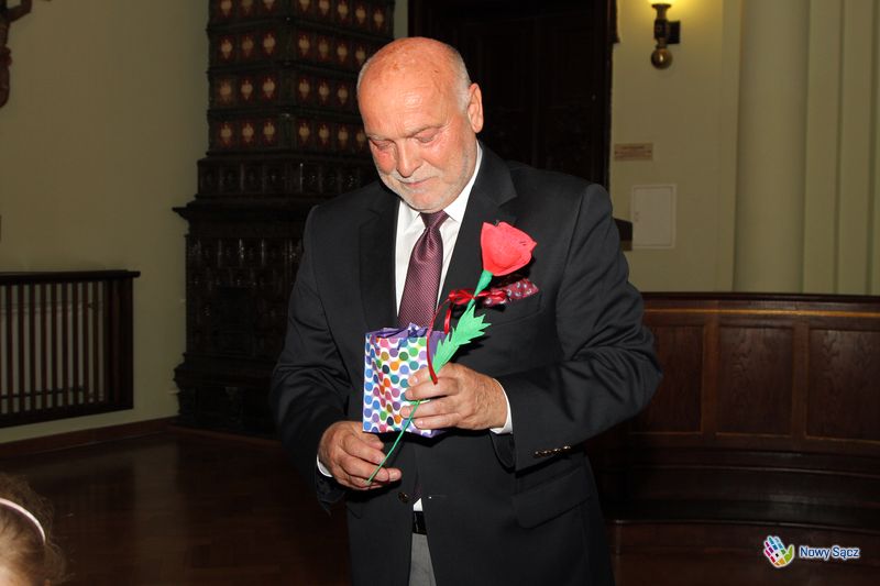 Dzieciaki dowiedziały się wielu interesujących rzeczy i same zadawały pytania. – Jaki kolor ma orzeł, który tu wisi na ścianie? – ciekaw był jeden z małych gości. – A dlaczego ratusz jest inny niż inne domy? – pytał inny dociekliwy. Gospodarz starał się zaspokoić ciekawość maluchów, a spotkanie ukoronowane zostało wymianą podarunków: dzieci dostały słodycze, a gospodarz czerwoną różę. Na koniec dzieciaki zaśpiewały piosenkę o pięknej Ziemi Sądeckiej.