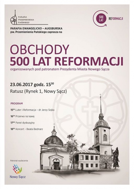Uroczystości rozpoczną się o godz. 15:30 w sądeckim ratuszu wystąpieniem dra Jerzego Sojki pt. "Luter i Reformacja". Na godz. 17:00 przewidziano panel dyskusyjny, po którym, o godz. 18:30, organizatorzy zapraszają na koncert Beaty Bednarz.