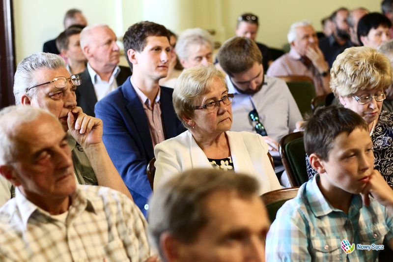 Sala ratuszowa szybko zapełniła się gośćmi, których powitał - prowadzacy spotkanie - Jerzy Leśniak i zaprezentował najnowszy tom Rocznika Sądeckiego, który poświęcony jest dwóm zasłużonym postaciom - Józefowi Jungiewiczowi, działaczowi "Solidarności" i wojewodzie nowosądeckiemu z początku lat 90., a także dr Józefowi Hamplowi, historykowi Uniwersytetu Pedagogicznego w Krakowie, związanemu przez wiele lat z Rocznikiem Sądeckim. Wraz z wydawnictwem, w ramach cyklu Biblioteka Rocznika Sądeckiego, ukazały się również dwie książeczki. Pierwsza z nich autorstwa Andrzeja Górszczyka, Jerzego Leśniaka i Leszka Migrały pt. "Sto scen z historii Nowego Sącza 1292-2017". Natomiast autorem drugiej książeczki jest prof. Tadeusz Aleksander, a jej tytuł to "Z dziejów rodu Aleksandrów".